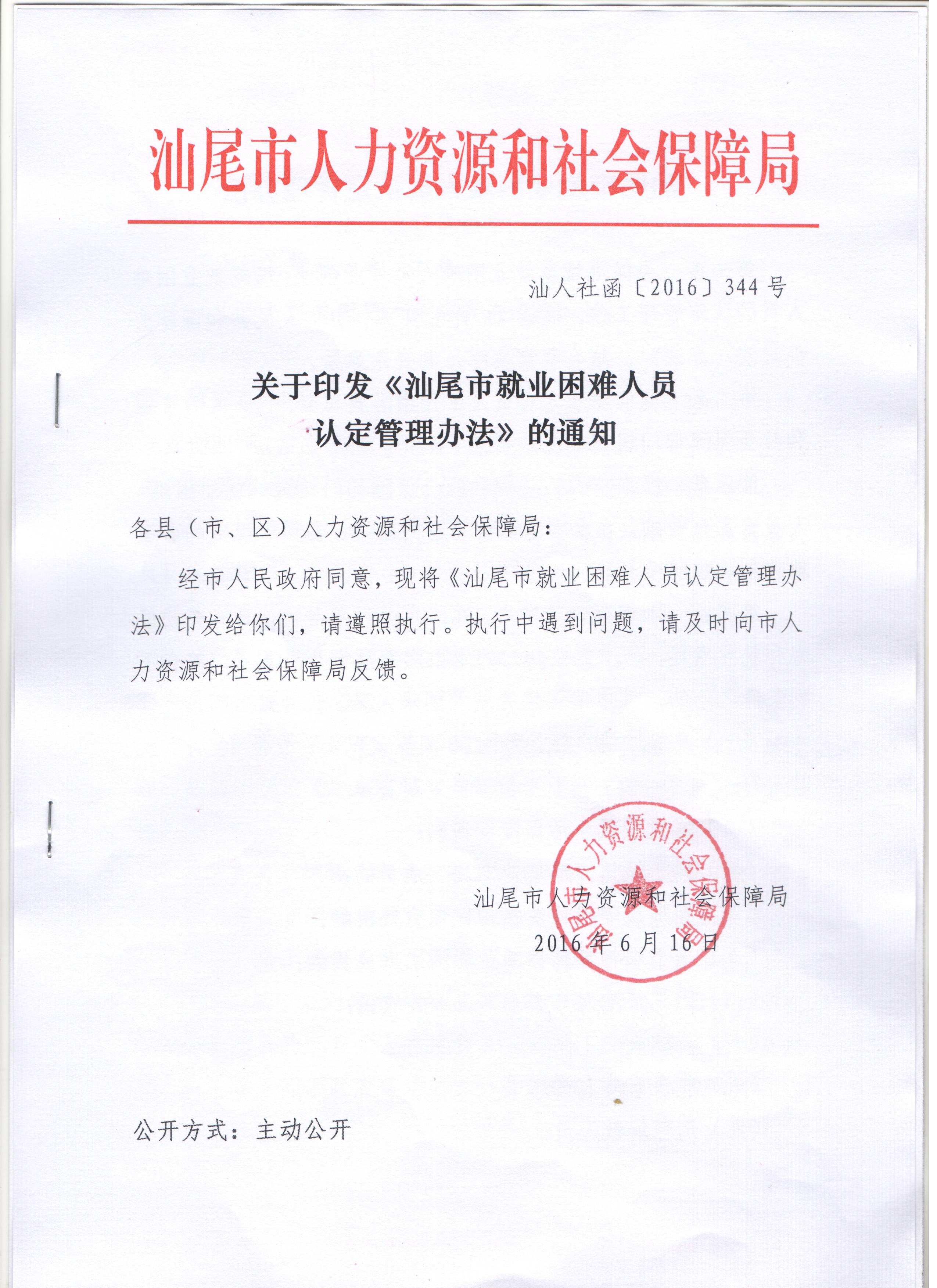 汕尾市就业困难人员认定管理办法