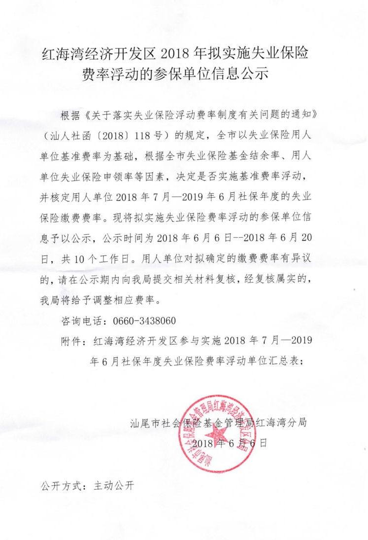 附件:红海湾经济开发区2018年拟实施失业保险费率浮动的参保单位信息公示.pdf